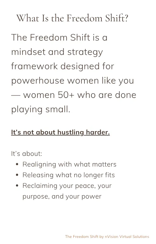 At nVision Virtual Solutions, we help women 50+ turn their skills, experience, and stories into digital products and businesses powered by AI—so you can finally build the freedom life you’ve earned.